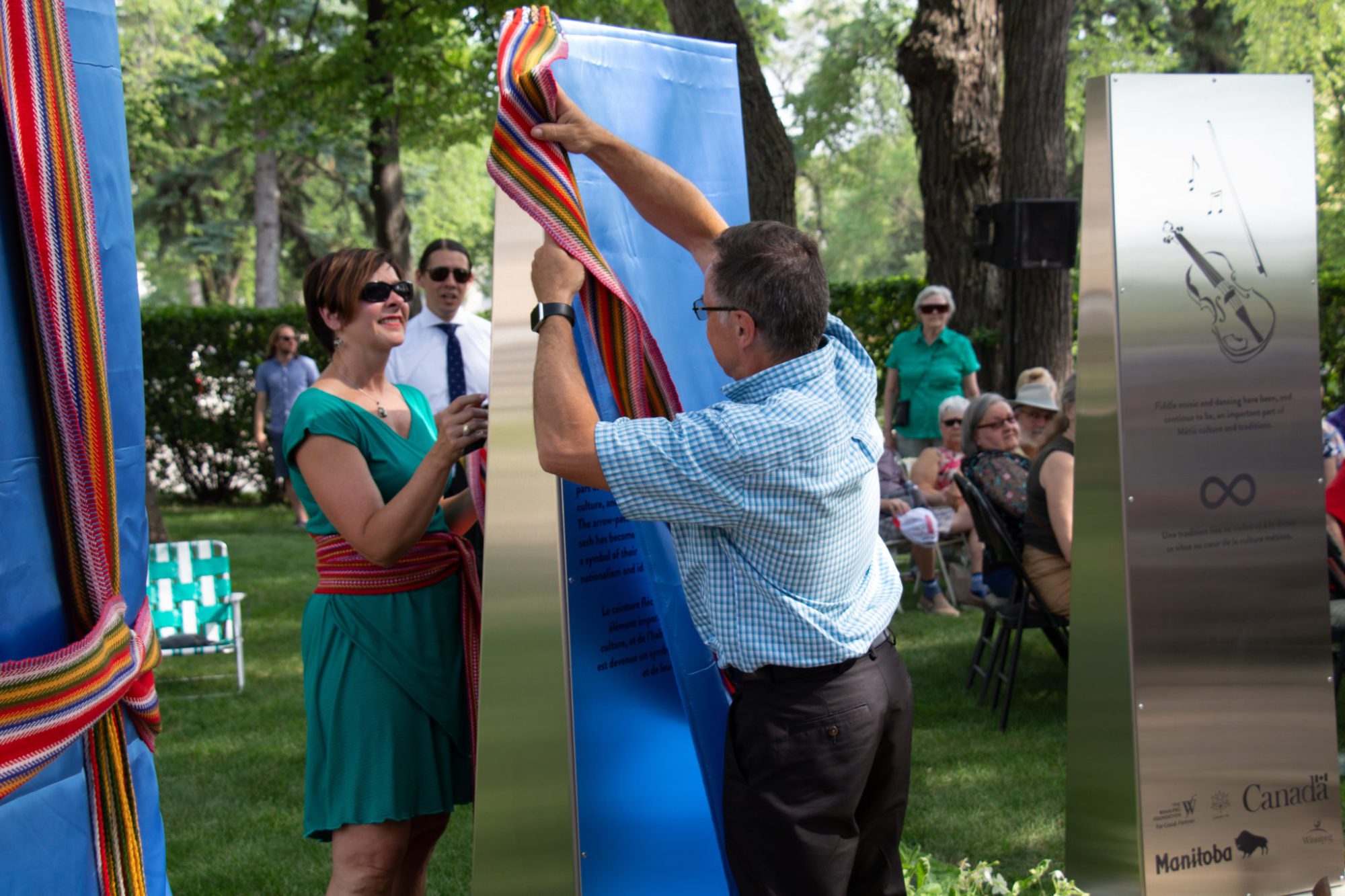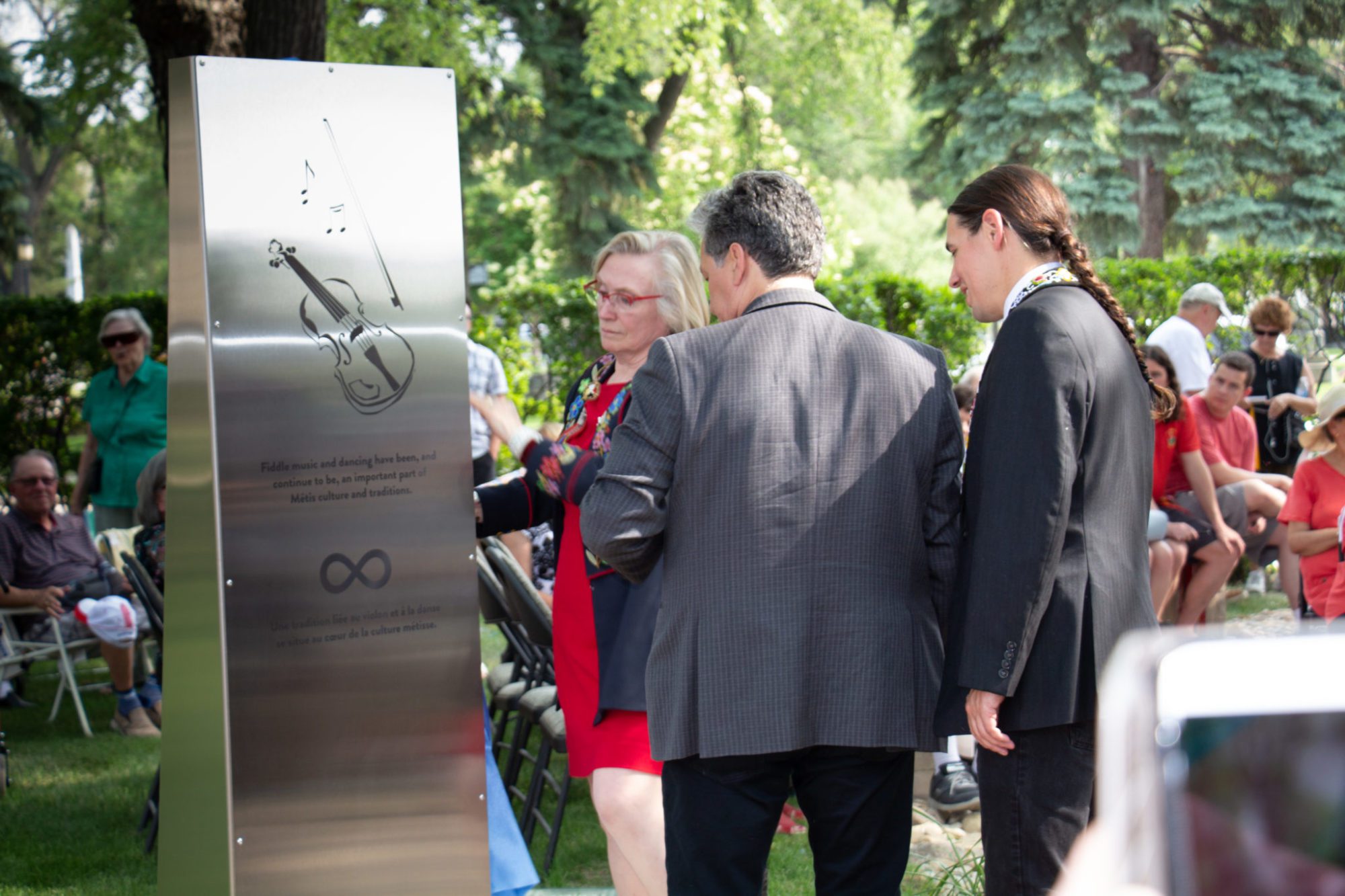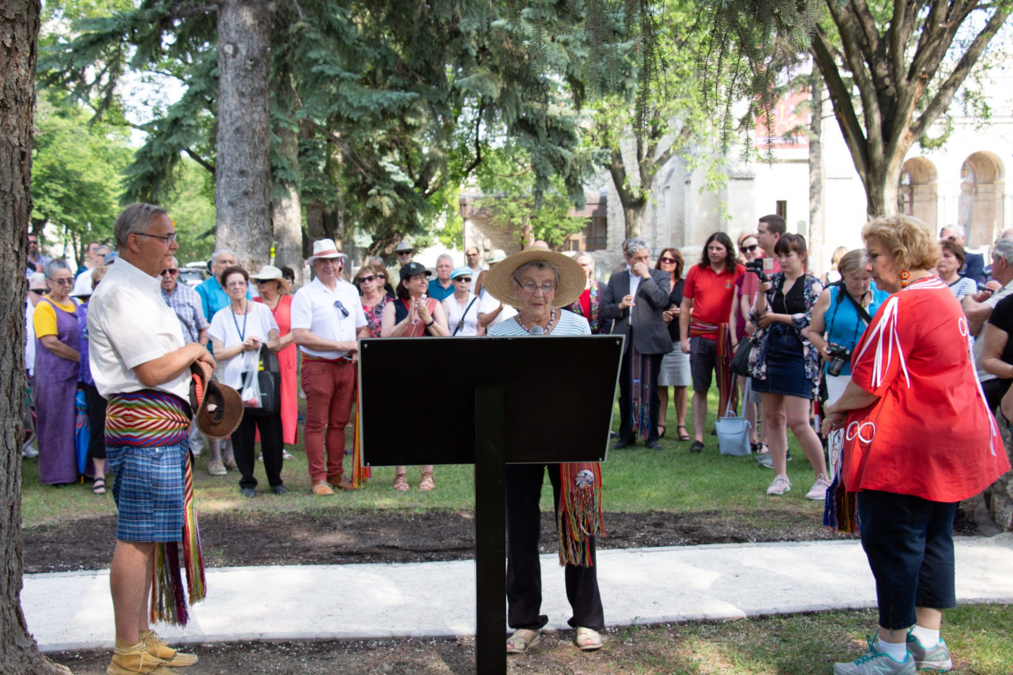 Plusieurs dizaines de personnes étaient rassemblées le 21 juin en cette Journée nationale des peuples autochtones, au Jardin du patrimoine de Saint-Boniface. Un espace de reconnaissance métisse a été inauguré.
