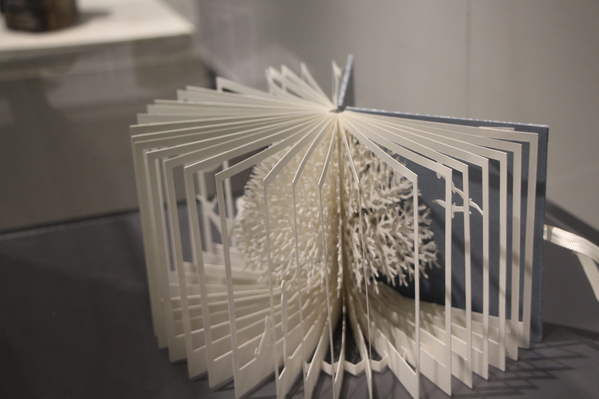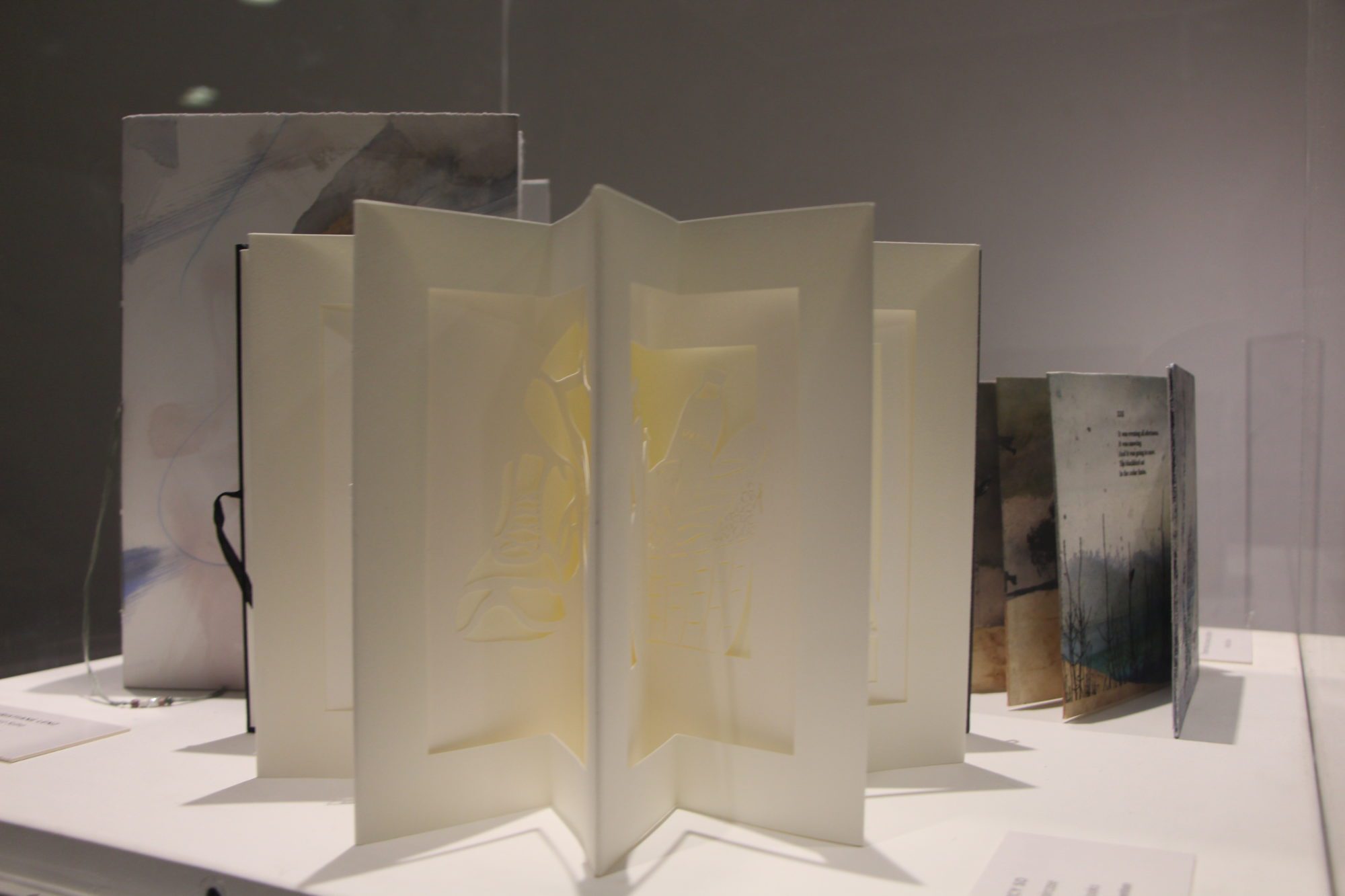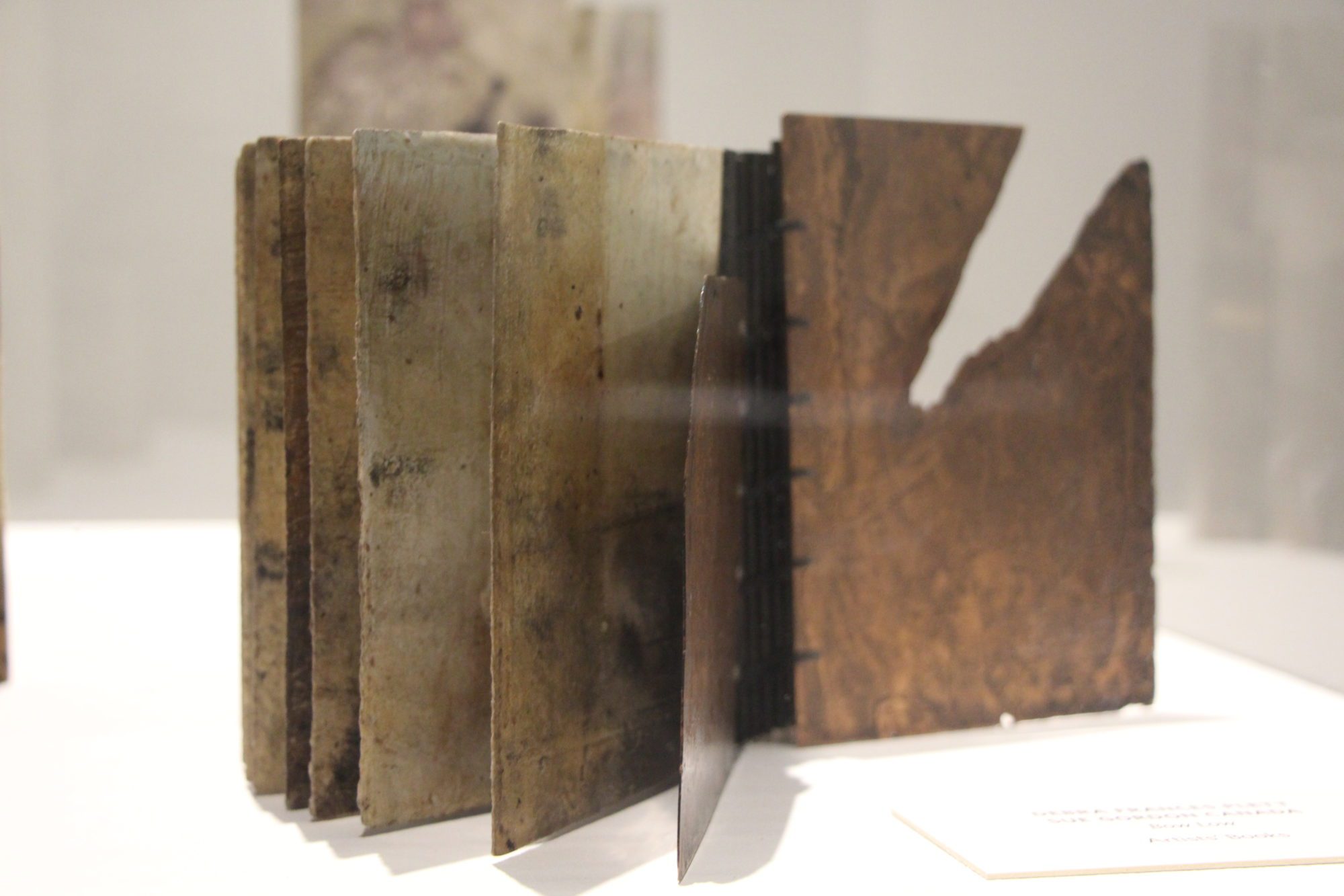 Les œuvres présentées au CCFM, viennent d’artiste du monde entier et sont réparties en différentes catégories, telles que reliure d’art, fabrication de papier, papier décoré et d’autres encore. Elles ont été choisies pour leur manière unique d’utiliser le livre.