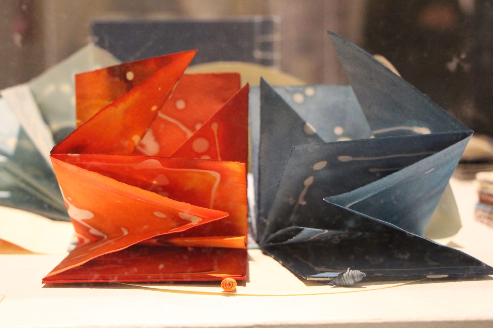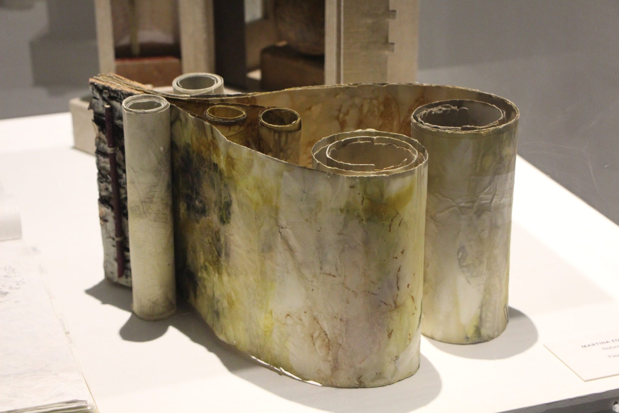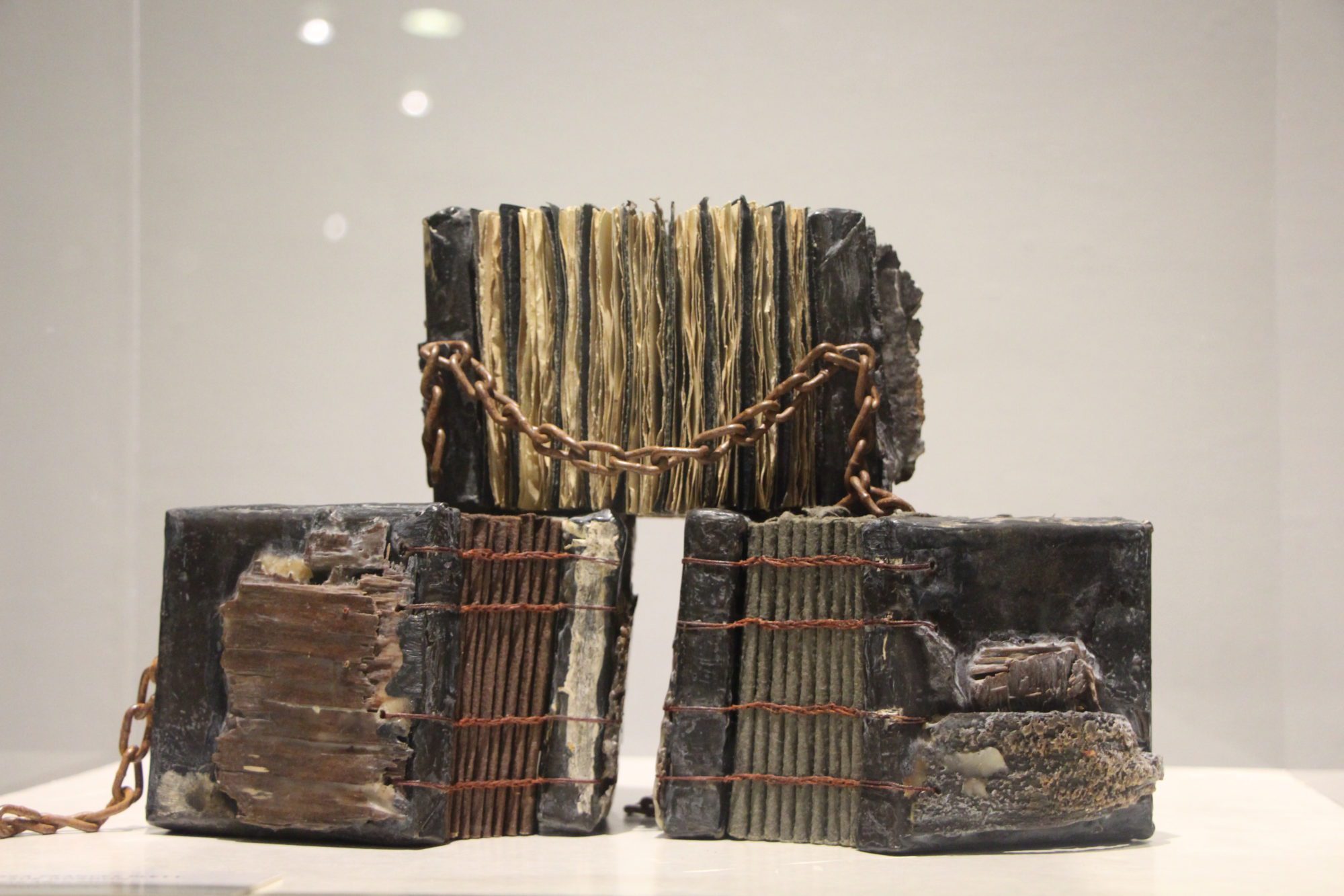 Les œuvres présentées au CCFM, viennent d’artiste du monde entier et sont réparties en différentes catégories, telles que reliure d’art, fabrication de papier, papier décoré et d’autres encore. Elles ont été choisies pour leur manière unique d’utiliser le livre.